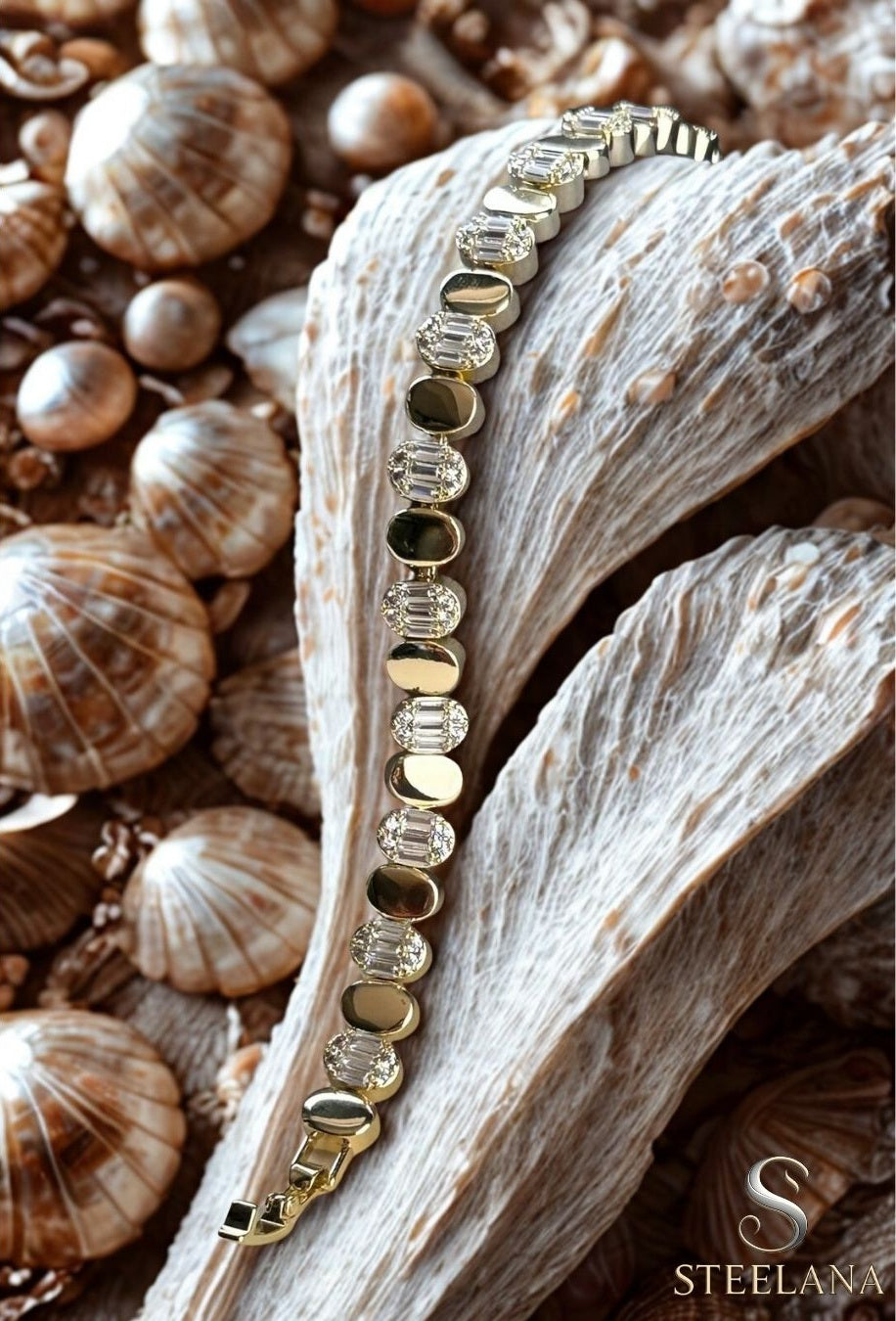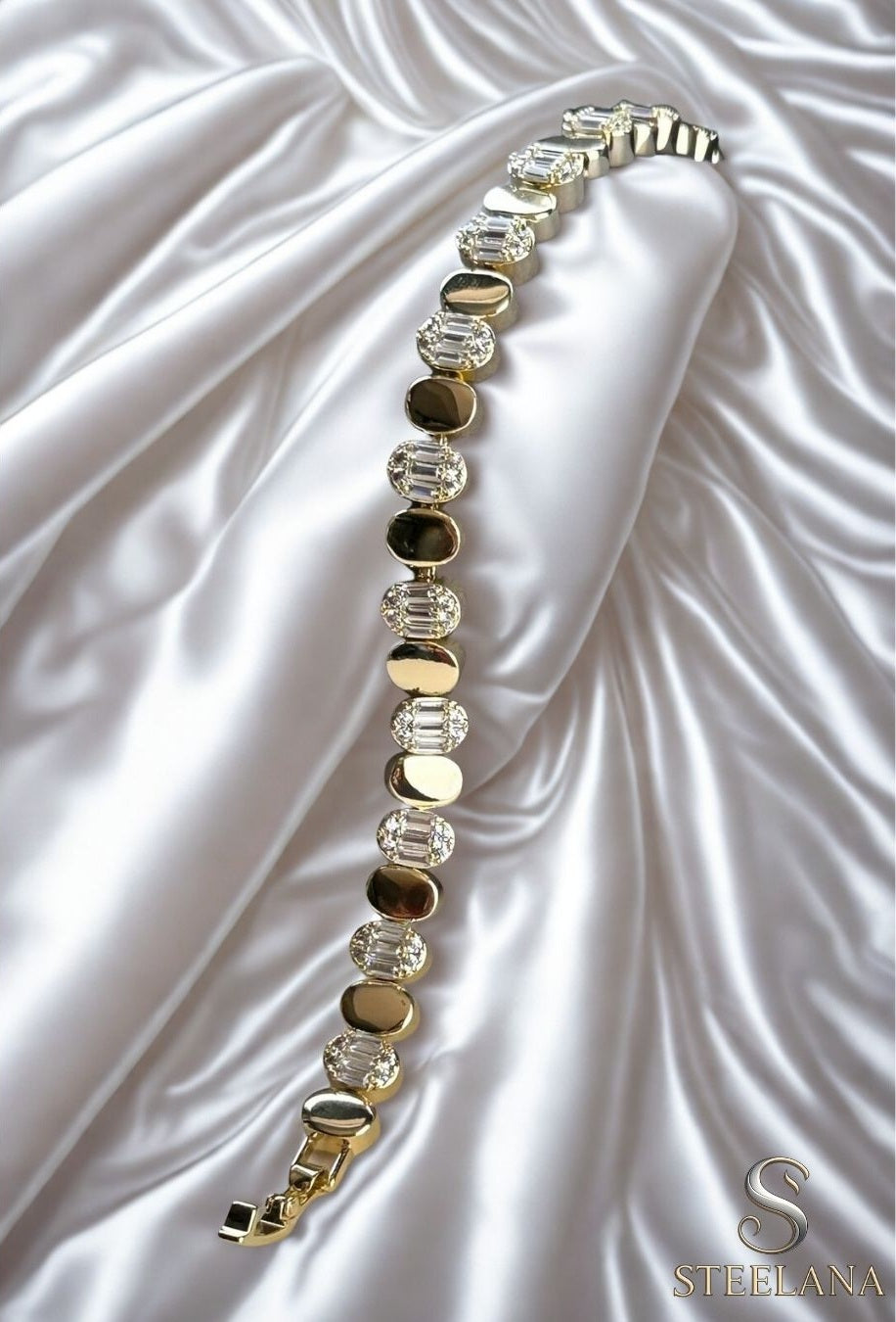 Gold 14K Oval Kristal Taş Detaylı Sıralı Bileklik