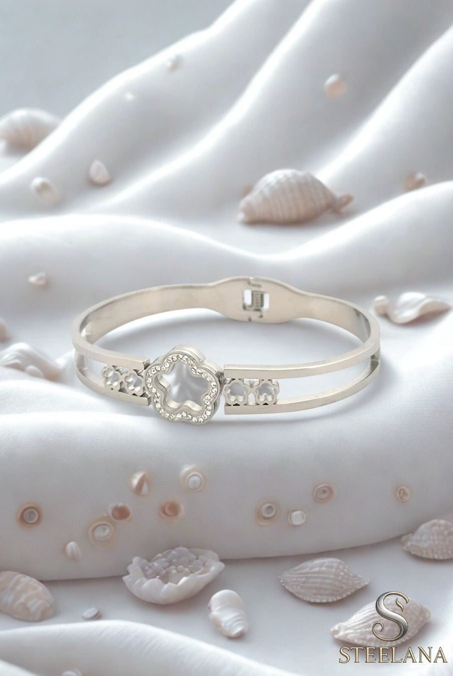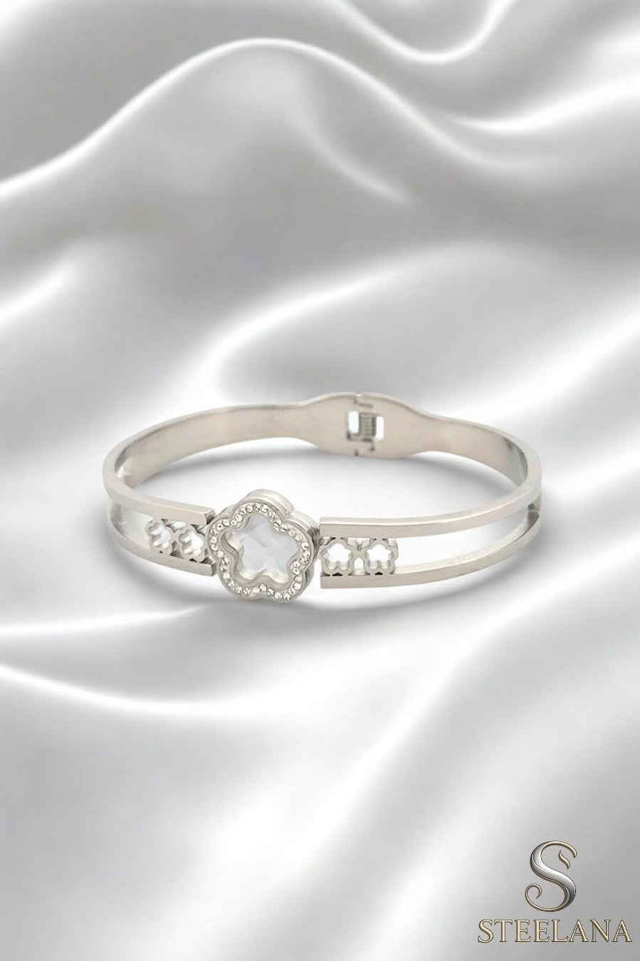 Silver Zirkon Star Çelik Kelepçe Bileklik